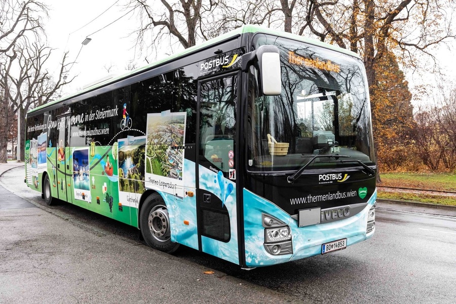 Von Wien nach Bad Waltersodorf – Sicher, schnell, bequem und umweltfreundlich! Gemeinsam mit der Österreichischen Postbus AG hat das Thermen- & Vulkanland die schnellste öffentliche Verbindung von Wien direkt ins „Sehnsuchtsland“ der Steiermark geschaffen. Der gebrandete Bus fährt täglich vom Wiener Hauptbahnhof über die H2O Kindertherme, die Heiltherme Bad Waltersdorf und das Rogner Bad Blumau…